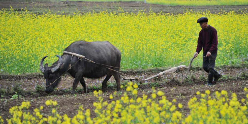 广西百色的农民在立春当天赶牛下地备耕