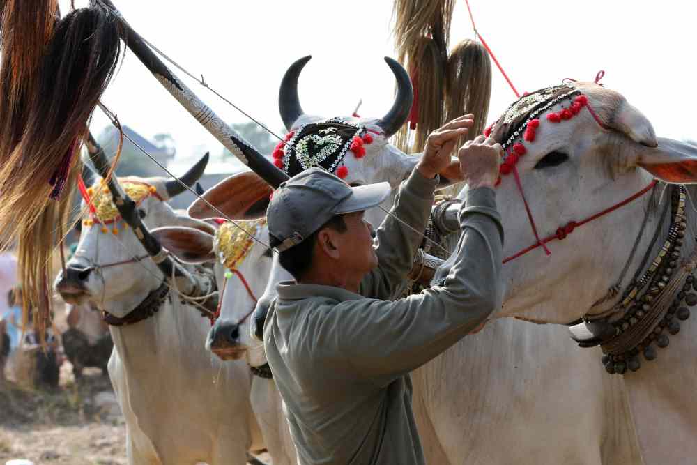 柬埔寨磅士卑省有举行奔牛比赛迎接柬埔寨新年的传统。