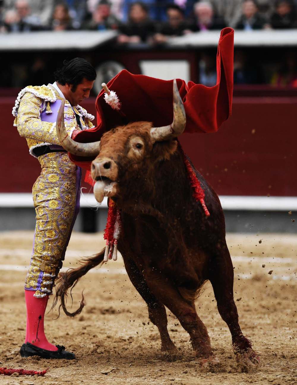 斗牛士在西班牙马德里的拉斯本塔斯斗牛场表演斗牛