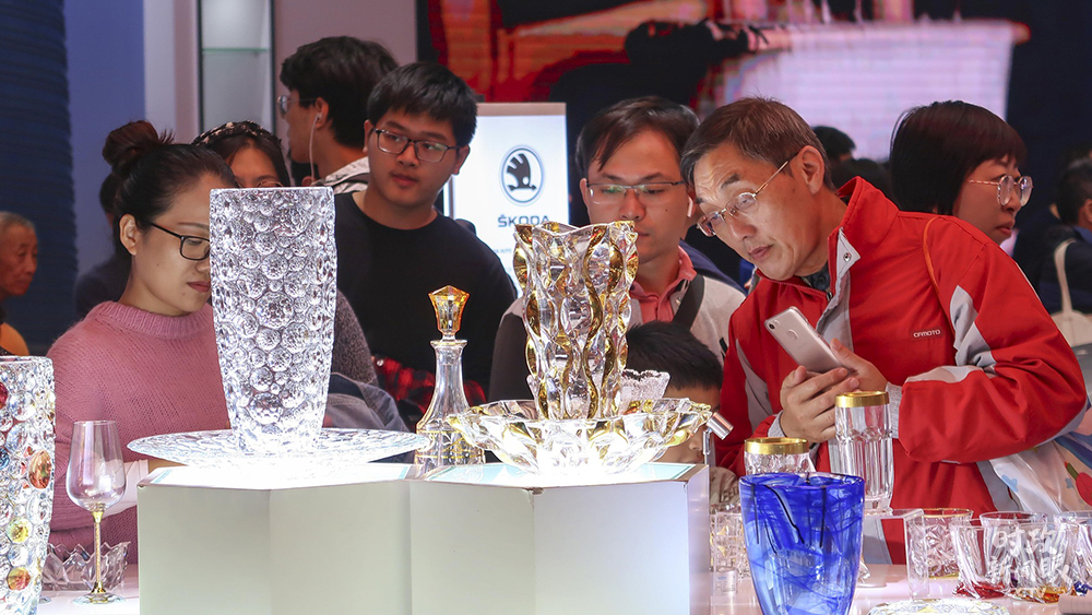 △捷克共和国已连续三届参展进博会,手工雕刻、打磨的水晶工艺品成为捷克最受欢迎的旅游纪念品和出口商品。