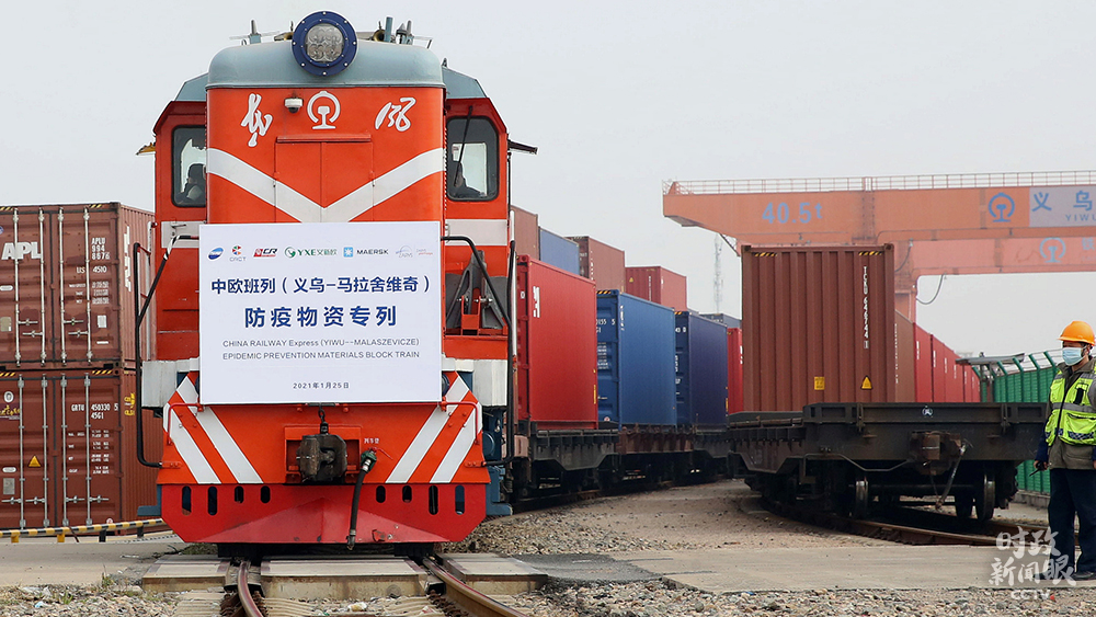 △1月25日,满载着100个标箱的防疫物资及生产生活物资的“义新欧”中欧班列(义乌-马拉舍维奇)防疫物资专列从浙江义乌西站启程,将于13天后抵达波兰马拉舍维奇。这是2021年中国首趟中欧班列防疫物资专列。