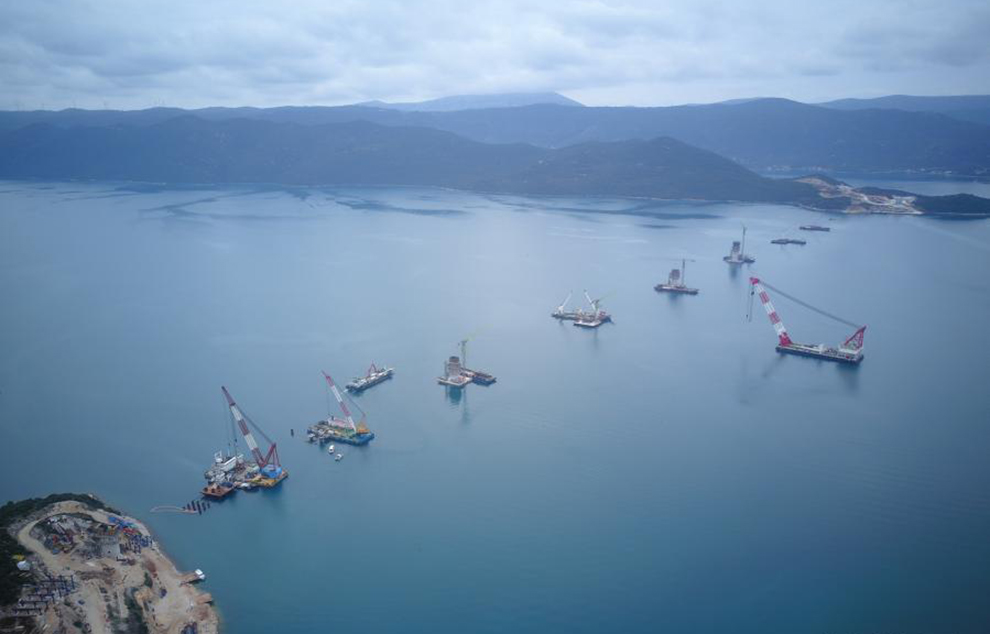 2020年2月1日,克罗地亚南部的佩列沙茨大桥施工现场。