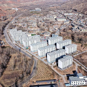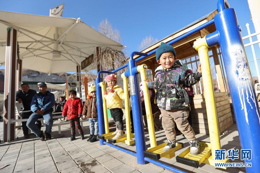 2月5日,在青海省海东市平安区三合镇的易地搬迁集中安置区,村民们在小区广场上玩耍。