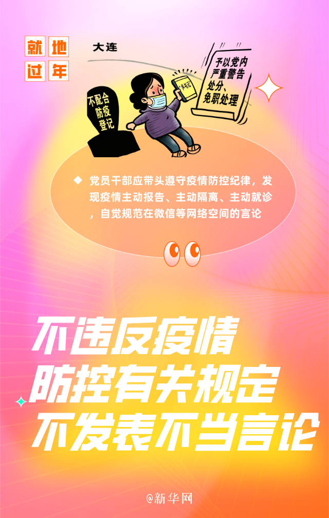 面对疫情防控的严峻形势,今年多地提倡“就地过年”。作为党员干部,该如何切实履行好示范带头作用?下面几点提醒要记牢!