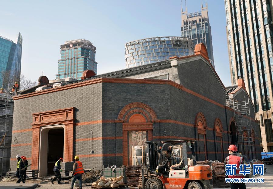 中共一大纪念馆正在加紧建设(2月4日摄)。新馆建设工地有100多名工人留在上海过春节。新华社记者 刘颖 摄