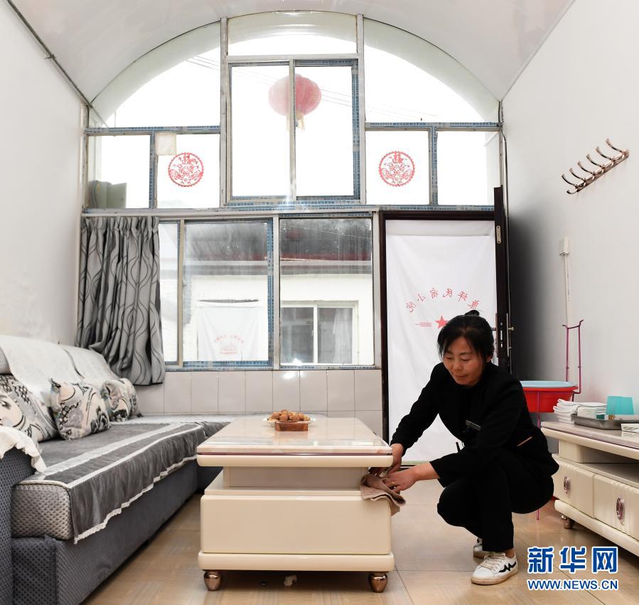 陕西延安宝塔区冯庄乡康坪村的一个窑洞民宿里,员工在打扫房间(2019年5月6日摄)。新华社记者 刘潇 摄