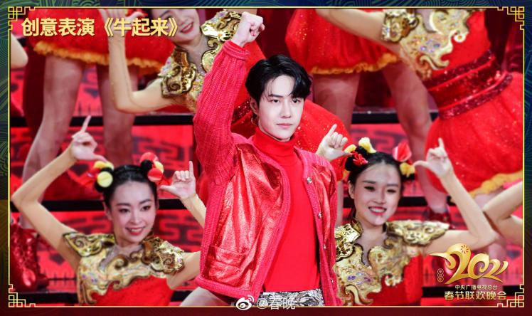 春晚舞台上,刘德华、关晓彤、王一博共同演绎创意表演《牛起来》