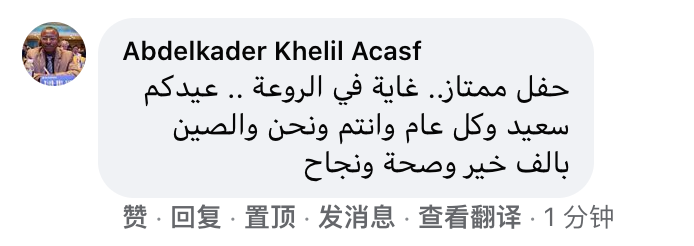 阿尔及利亚网友阿卜杜勒卡德尔·凯里尔·阿卡夫留言:“一场很棒的晚会,非常精彩。新年快乐,希望新的一年我们和中国人民都有无尽的健康和成功。”