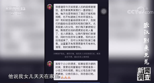 我拍了一个小视频,他就认出来是他老婆了,私信我说太感谢你了,他说我女儿天天在家里为他的妈妈自豪,然后全家都守在那看她的状况……那个时候他们也着急,通过我可以了解他们的状况。