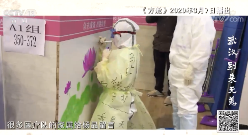 从那以后,很多医疗队的家属给杨晶留言,让她帮忙拍摄他们在江岸方舱工作的家人,家人也通过杨晶的手机报平安,传递亲人的关怀和思念。