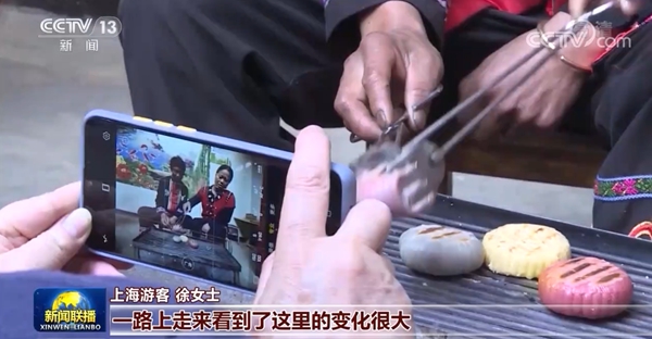 虽是隆冬时节,但司莫拉佤族村却沐浴在一片暖阳之中。这个假期,村民李发顺家迎来了上海的游客,他开办的大米粑粑体验作坊深受好评。
