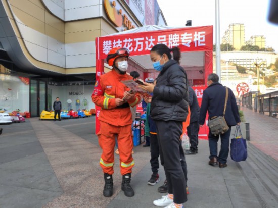 吃过早饭,消防员郭鹏就连忙带领班级人员调试好灭火装备,准备好防火宣传用品。他们今天的任务是前往攀枝花市万达广场开展防火宣传。
