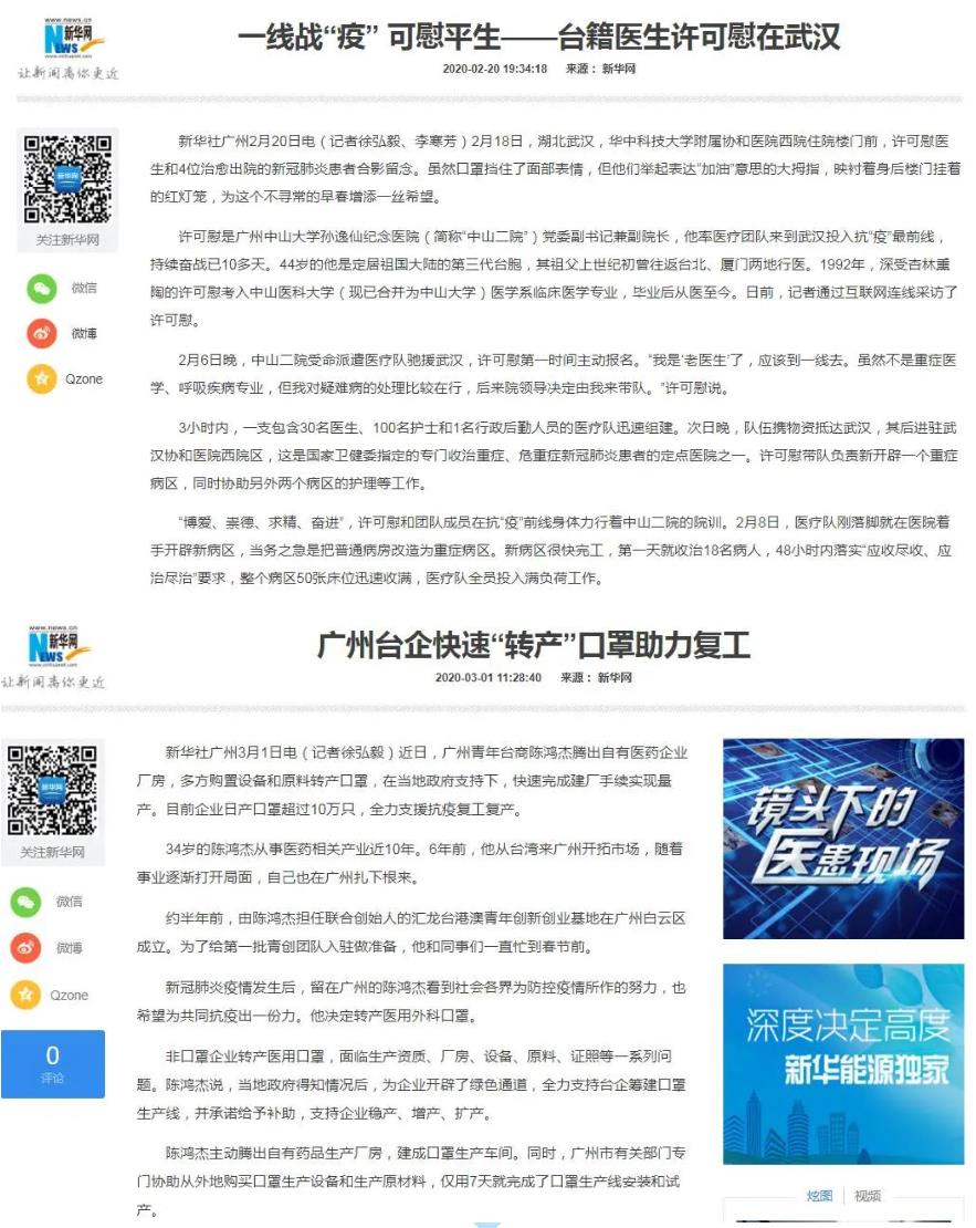 通过构建全市涉台部门、单位的疫情防控宣传网络,共同营造涉台疫情防控舆论氛围。一是先进典型聚焦“台胞”。深入挖掘台籍医生许可慰率队驰援武汉抗疫一线、在穗台青企业家陈鸿杰应对疫情迅速转产口罩支援复工复产、广州台企驰援湖北河南等地“小汤山”建设、广州海鸥住宅工业股份有限公司发挥党建引领助推企业复工复产、在穗台企台商自愿捐款捐物等穗台携手防疫感人事迹。二是复工复产关注台企。联系穗台媒体,多渠道多层次多角度宣传在穗台胞台企复工复产动态和成就。三是舆情防控紧盯岛内操作。妥善处置岛内炒作“世界梦号”邮轮、虚造广州“封城”、广州多数黑人感染疫情等不实报道,维护了社会大局稳定。