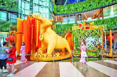 2月9日,顾客从泰国曼谷一家商场的春节装饰旁经过。 新华社发