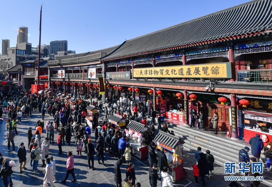 2月17日,游客在天津古文化街参观游览。新华社发(孙凡越 摄)