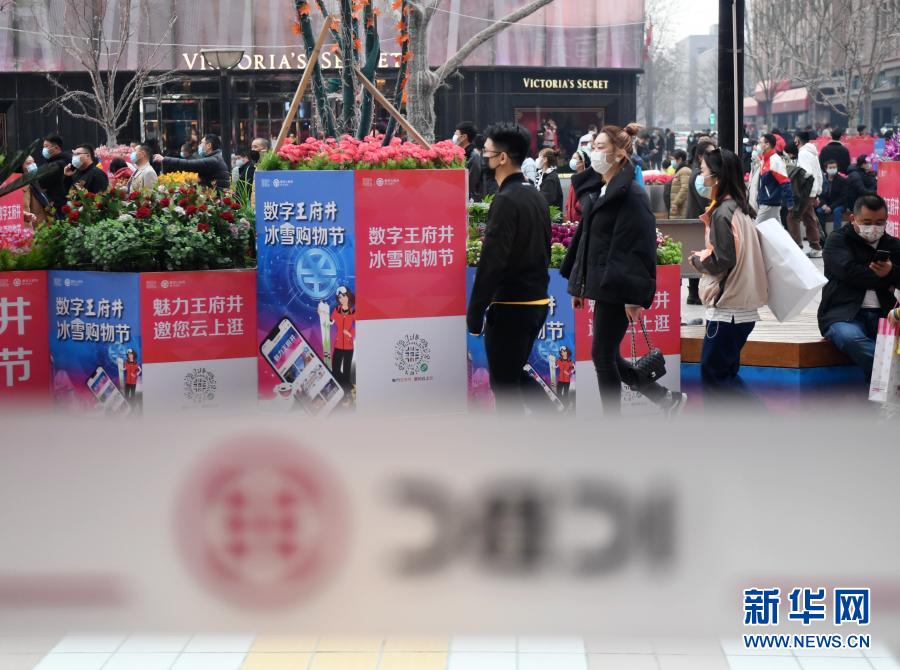 春节期间,“数字王府井 冰雪购物节”数字人民币红包试点活动在王府井大街进行(2月12日摄)。新华社记者 张晨霖 摄