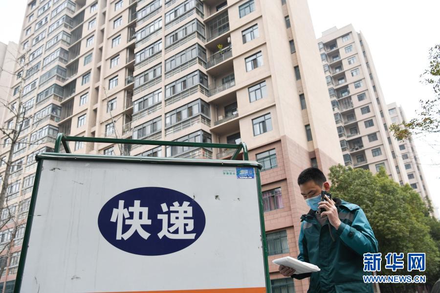 2月11日,中国邮政揽投员刘元元在安徽省合肥市青阳路社区一处居民小区内派送快递。新华社记者 张端 摄