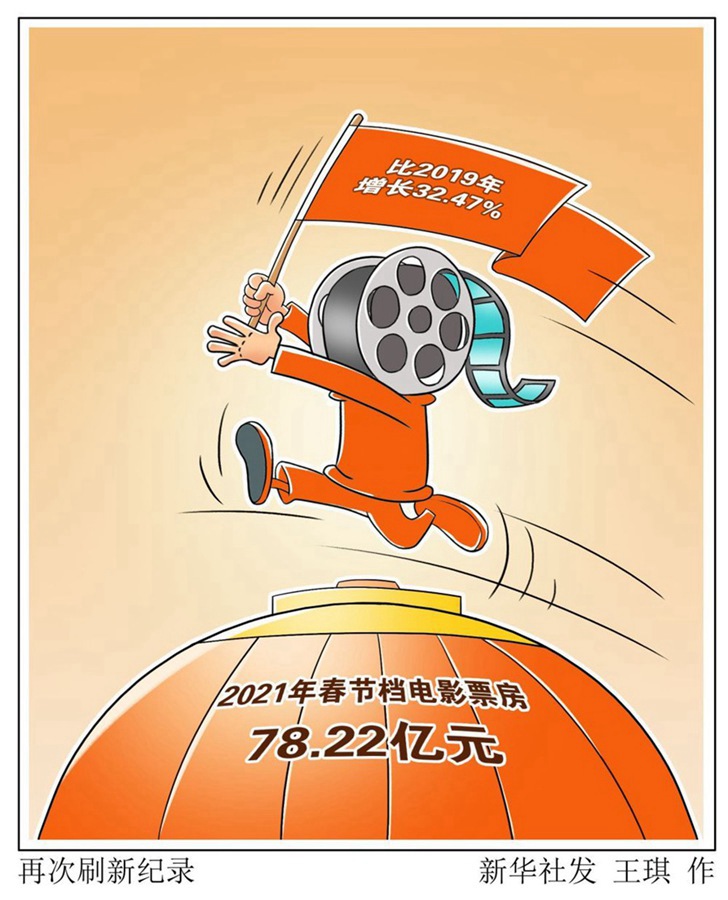 国家电影局数据显示,除夕至正月初六,全国电影票房达78.22亿元,再次刷新春节档票房纪录;支付宝数据显示,春节日均观影买票人数增加超560%。