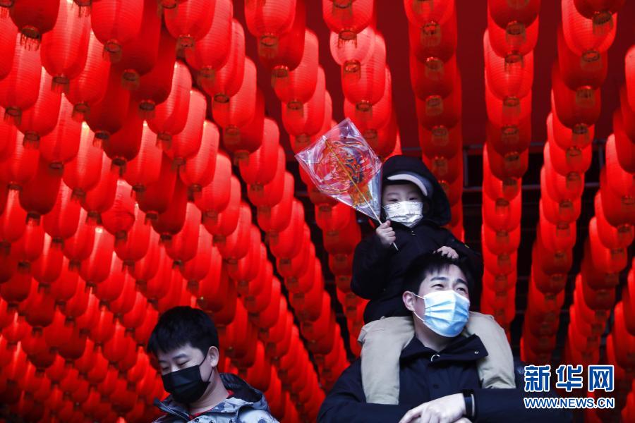 2月14日,人们在沈阳市和平区老北市特色风情街游玩。新华社记者 杨青 摄
