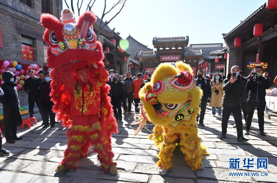 2月16日,游客在山西省忻州古城观看舞狮表演。新华社记者 马毅敏 摄