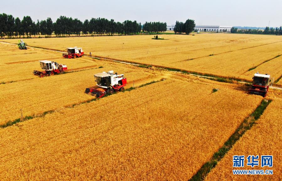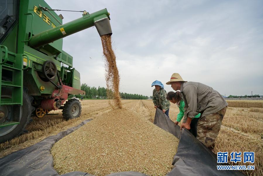 河北省滦州市滦城街道邹家洼村村民在收获小麦(2020年6月18日摄)。新华社记者 牟宇 摄