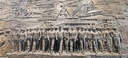 鞍钢集团博物馆大厅内的劳模群像浮雕。经济日报-中国经济网记者 孙潜彤摄