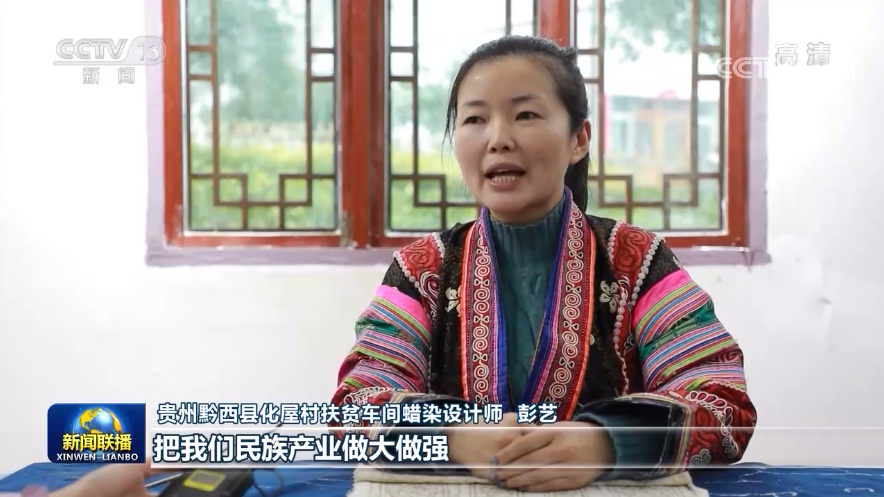 贵州黔西县化屋村扶贫车间蜡染设计师 彭艺:把我们民族产业做大做强,让我们苗族同胞的生活,过得像我们蜡染刺绣一样精彩。