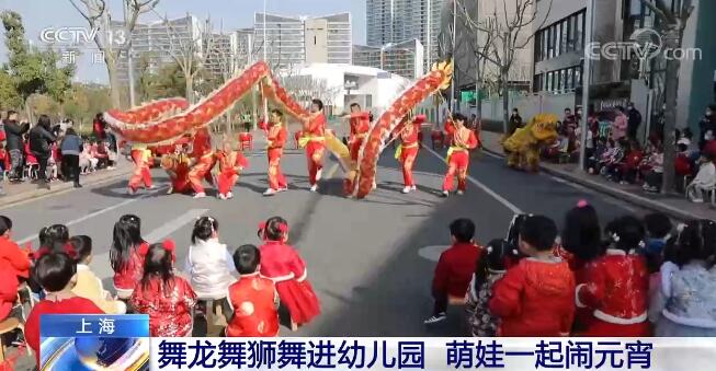 央视网消息:随着元宵佳节临近,近几天,上海各大幼儿园也陆续开园。在浦东,非遗项目“浦东绕龙灯”舞龙舞狮表演队就舞进了幼儿园和孩子互动,学舞狮、猜灯谜,传统习俗让孩子们欢欢喜喜闹元宵。
