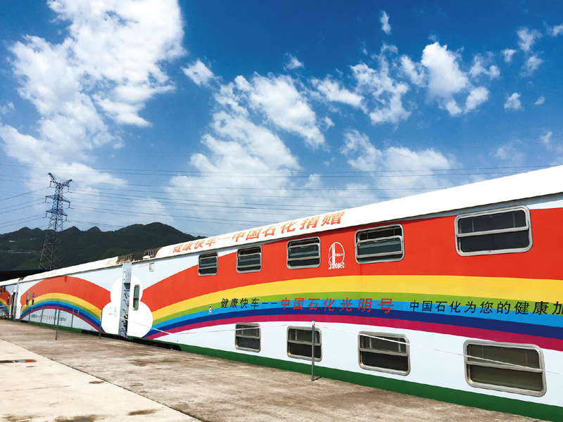 中央企业把健康扶贫放在重要位置,努力解决贫困地区“看病难”、“看病远”等突出困难。2004年以来,中国石化连续16年开展“中国石化光明号”健康快车公益项目,使4.6万名贫困白内障患者重见光明。图为2015年5月13日,“中国石化光明号”健康快车在湖北省恩施土家族苗族自治州开展公益活动。 中国石化供图 王志东/摄