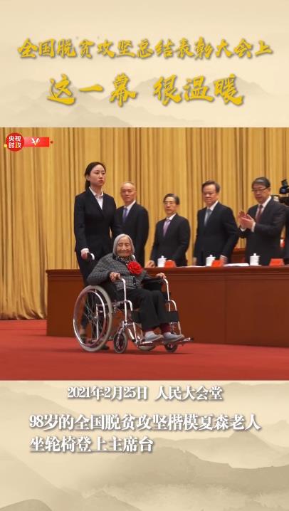 全国脱贫攻坚总结表彰大会上 这一幕 很温暖