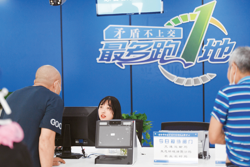 在“枫桥经验”的发源地浙江省诸暨市,当地积极推动县级社会矛盾纠纷调处化解中心建设,让老百姓遇到问题能进中心“找个说法”。图为2020年7月16日群众在诸暨市社会矛盾纠纷调处化解中心综合受理窗口咨询。 新华社记者 黄宗治/摄
