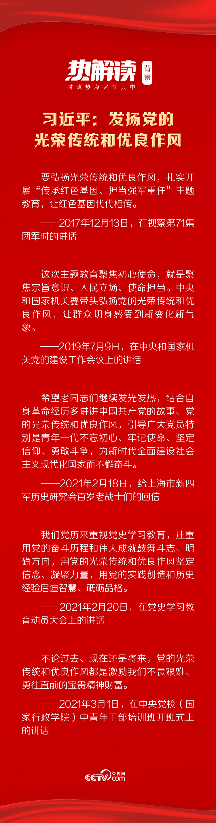 今年是建党100周年,回顾党团结带领人民群众在革命、建设、改革历史时期取得的伟大成就,总书记指出,很重要的一条就是我们党在长期实践中培育并坚持了一整套光荣传统和优良作风。