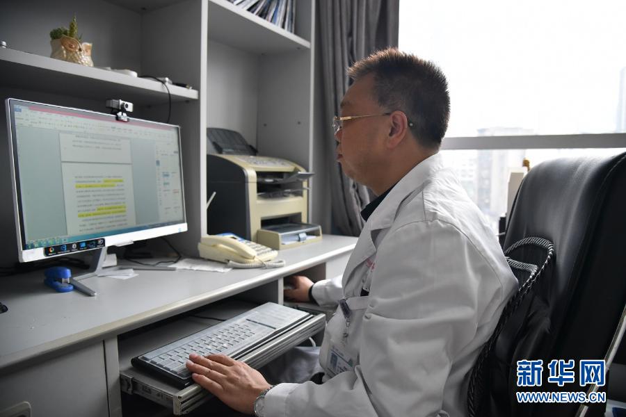 2月20日,全国人大代表、遵义医科大学附属医院消化病医院院长庹必光查阅此前撰写的议案。新华社记者 骆飞 摄
