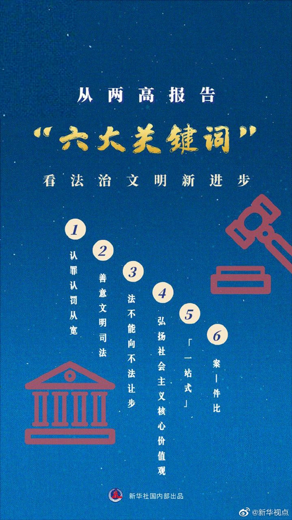 新华社北京3月10日电 题:从两高报告“六大关键词”看法治文明新进步