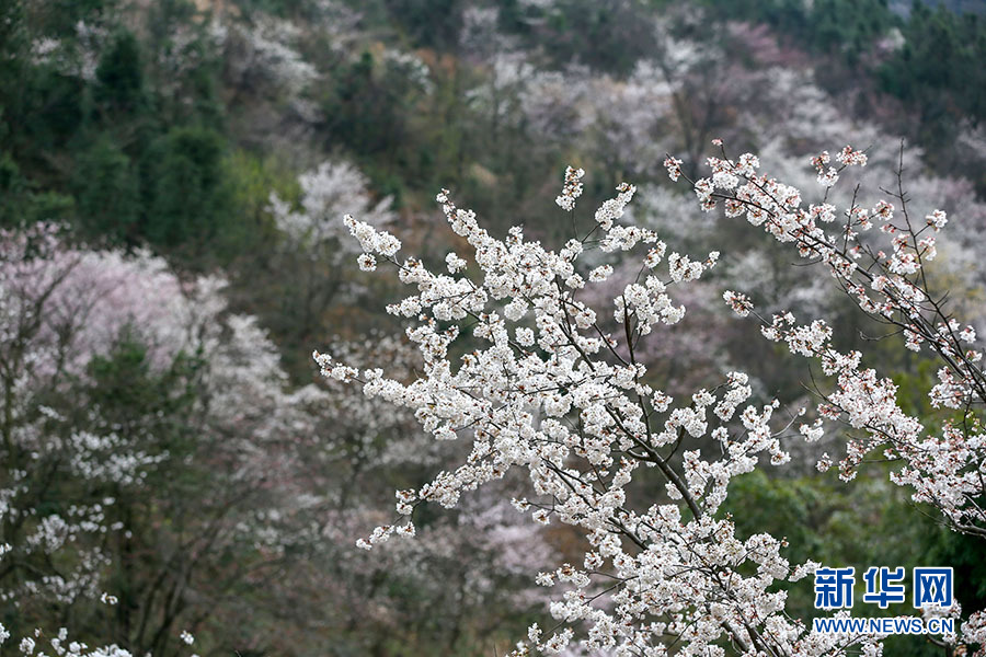 大幕山位于湖北省咸宁市咸安区境内,海拔965米,山上10余平方公里的杂木林中分布着近万株野樱花。大幕山野樱花已进入盛花期,花期可达1个月。漫山遍野,蔚为壮观。
