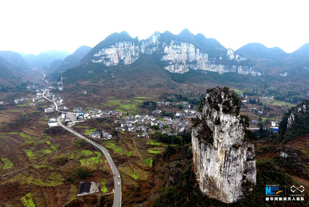 航拍贵州纳雍县化作乡枪杆岩村的通村公路。新华网 周远钢摄