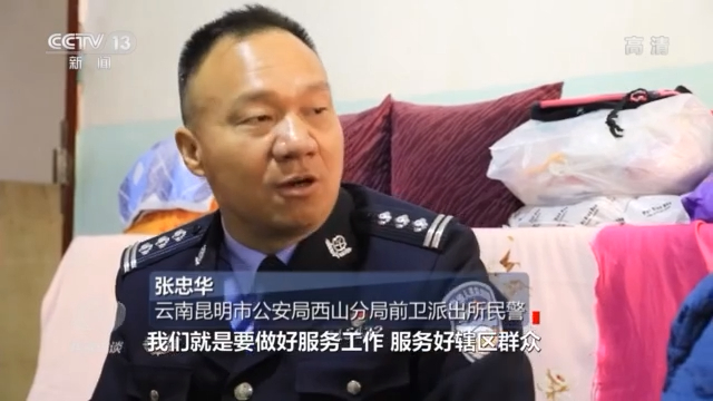 云南昆明市公安局西山分局前卫派出所民警 张忠华:老旧小区,我们就是要做好服务工作,服务好辖区群众。像您这样有什么需求,要我们做什么,要我们帮什么,不要有什么顾虑。