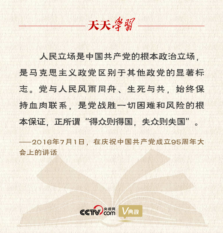 习近平总书记在“七一”重要讲话中指出:“坚持不忘初心、继续前进,就要坚信党的根基在人民、党的力量在人民,坚持一切为了人民、一切依靠人民,充分发挥广大人民群众积极性、主动性、创造性,不断把为人民造福事业推向前进。” 他借“得众则得国,失众则失国”这句两千多年前的古语,阐释了“人民立场”这个中国共产党的根本政治立场。