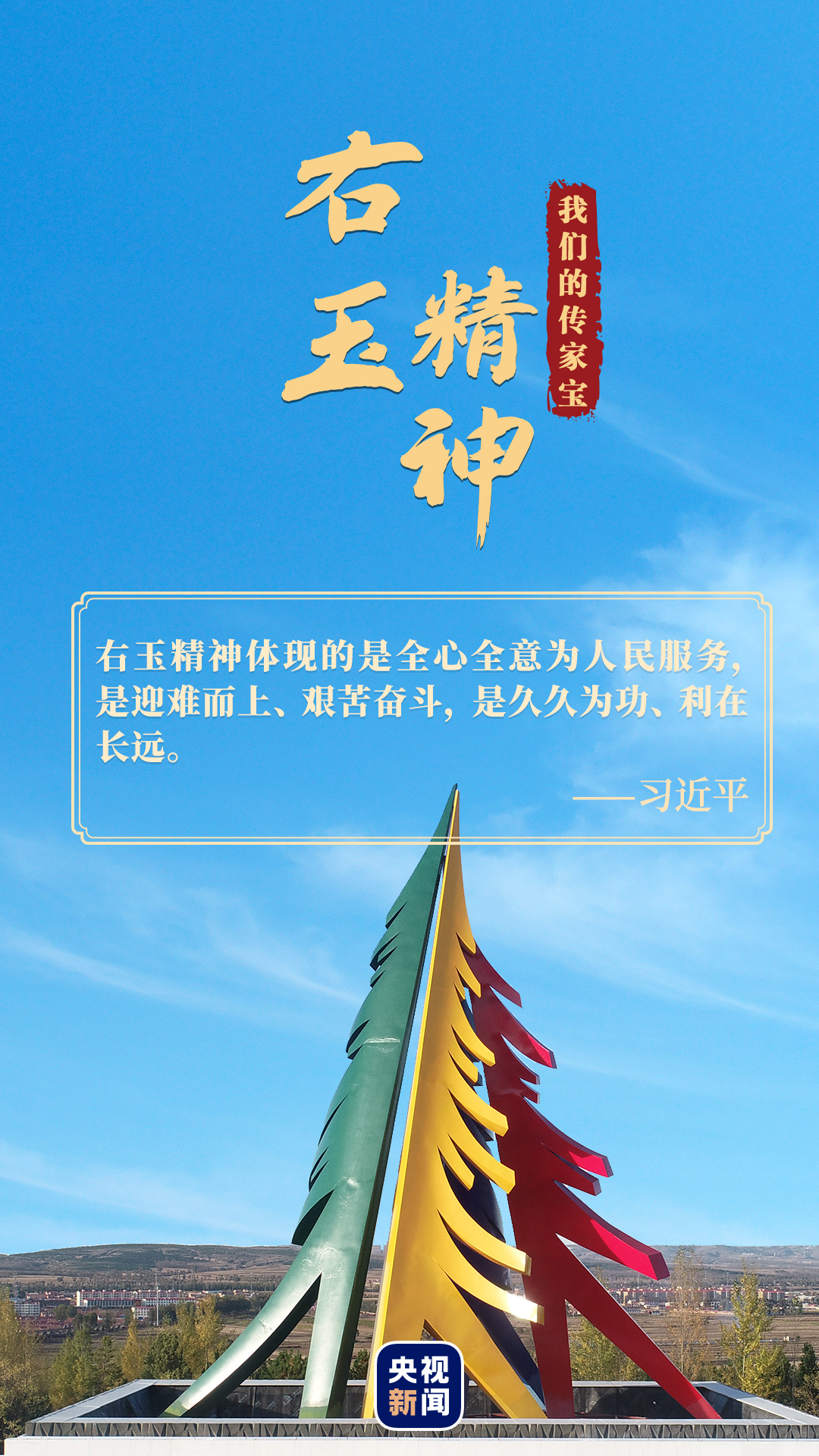 2012年9月28日,习近平同志在中共山西省委上报的《关于我省学习弘扬右玉精神情况的报告》的批示中,对右玉精神做了高度概括:“右玉精神体现的是全心全意为人民服务,是迎难而上、艰苦奋斗,是久久为功、利在长远。”