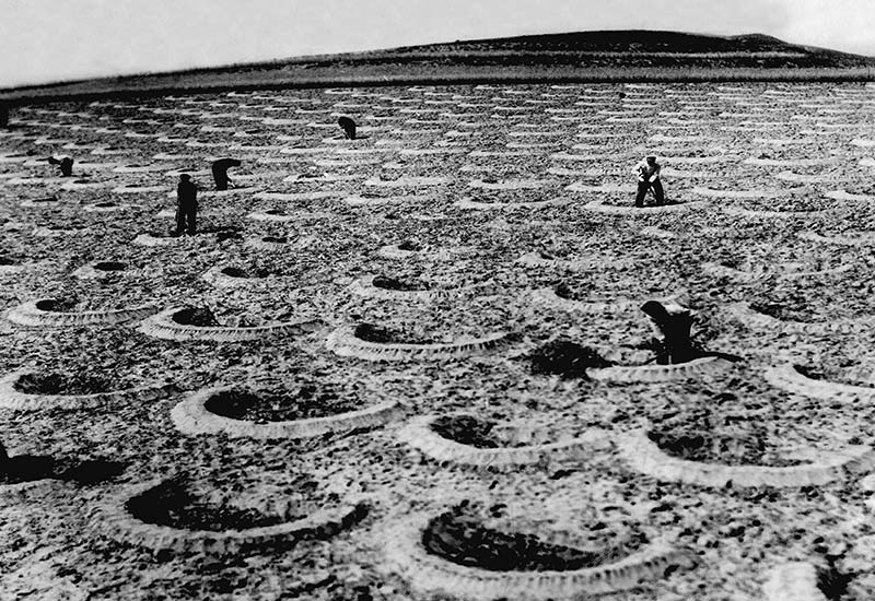 △20世纪六七十年代,右玉县群众在荒山植树。