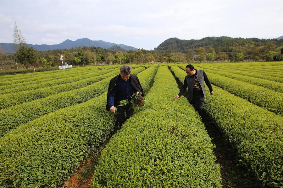2019年3月26日,在福建省武夷山市星村镇,科技特派员与茶农在生态茶园内了解茶叶长势。新华社记者 安希雅 摄