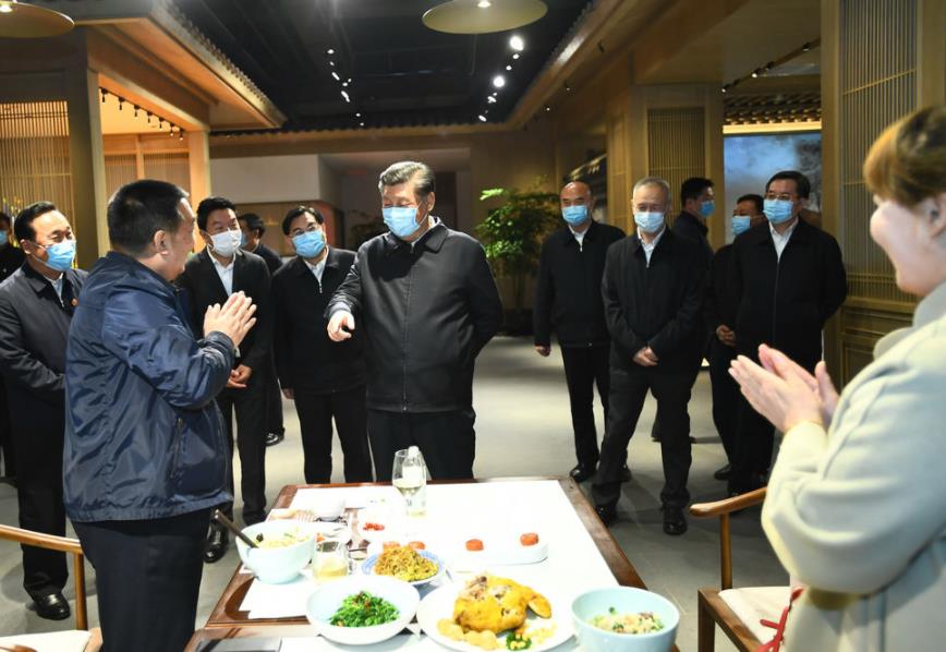 习近平总书记率先垂范。广东的自助餐、河北的大盆菜、古田的红米饭、梁家河的油馍馍……考察调研时的一餐一饭,处处彰显节俭朴素的优良作风。