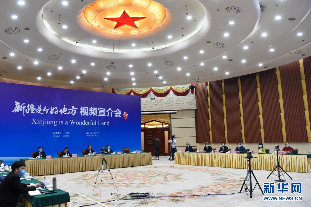 这是3月26日拍摄的“新疆是个好地方”视频宣介会现场。新华社记者 丁磊 摄