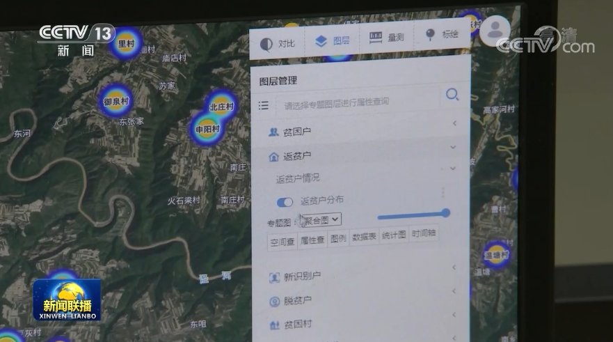 在陕西咸阳精准扶贫大数据平台,正在进行的是防止返贫动态预警监测,脱贫户的产业发展、收入构成等数据在平台上一目了然。