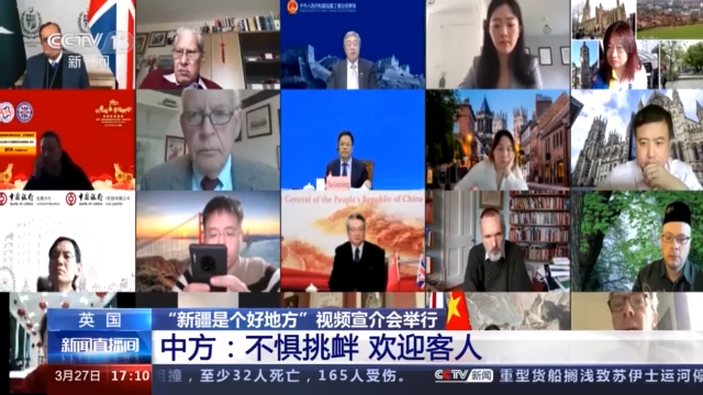 26日,中国驻英国使领馆与新疆维吾尔自治区政府共同举办“新疆是个好地方”视频宣介会,介绍新疆发展成就,有力驳斥抹黑攻击中国的涉疆谎言。全英各地议会、政府、工商、科教、文化等各界人士,外国驻英使节和外交官等百余人通过连线方式出席了活动。
