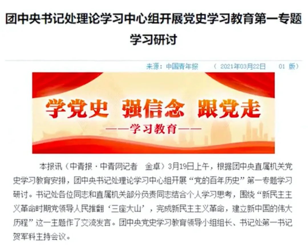 ◆团中央书记处理论学习中心组开展党史学习教育第一专题学习研讨