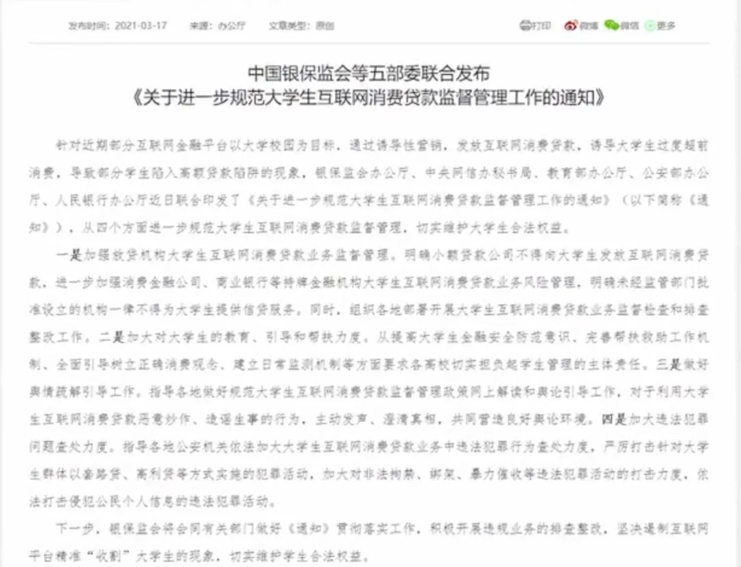 规范大学生网贷,五部委出手!