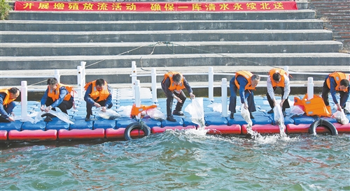 为保护丹江口库区生态,2020年相关部门联合开展鱼类增殖放流活动,将162.5万尾鱼苗放入丹江口库区。(资料图片)