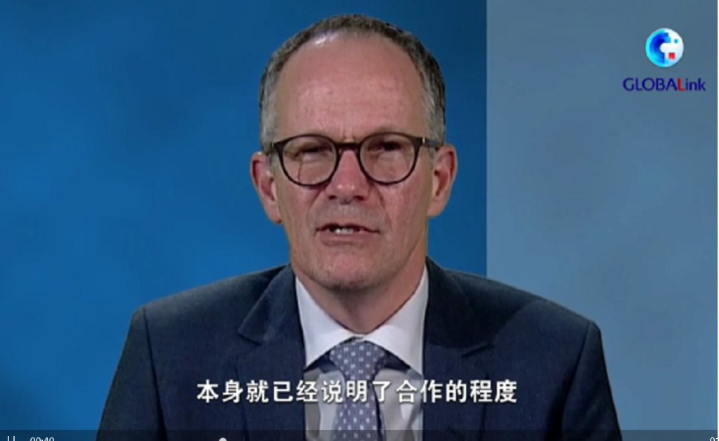 国际专家组组长彼得·安巴雷克在回答新华社记者提问。图为视频截屏