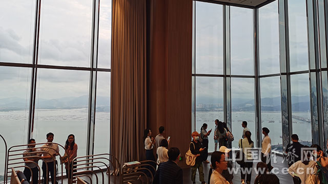 另外,从音乐厅内,透过三面玻璃幕墙270度视野俯瞰,海天一色,高楼林立,享受音乐的同时也观赏了不一样的风景。